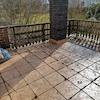 Der an der Westfassade außen liegende Kellerabgang ist marode, an der Fassade des Kellerabgangs zeigen sich ebenfalls Feuchteschäden.