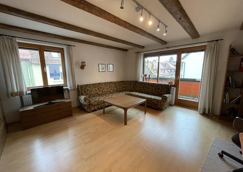Im ersten Obergeschoss erwartet Sie eine einladende Küche mit Essbereich, die durch einen gemütlichen Kachelofen ergänzt wird. Das angrenzende Wohnzimmer bietet mit ca. 24 m² ausreichend Platz für gesellige Abende. Ein großes Schlafzimmer, Abstellraum und ein Gäste-WC neben dem kleinen Bad runden das Raumangebot auf dieser Etage ab. Der Balkon mit ca. 7,78 m² lädt zum Entspannen im Freien ein.