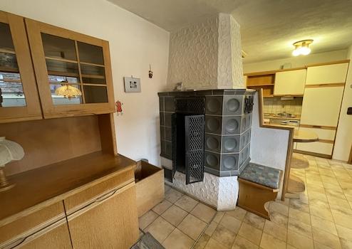- Küche im 1. OG mit Einbauküche und Kachelofen