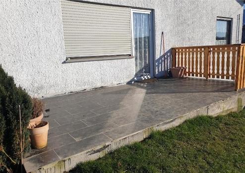 2021 renoviertes ,massiv erbautes Einfamilienhaus, die Fassade ist verputzt, das Dach ist mit Trapetzblechen eingedeckt, die Heizung ist eine Öl- Zentralheizung ( 2021 neu ), die Fenster sind aus Kunststoff, isolierverglast und überall mit Rollläden versehen, die Böden sind mit Fliesen, Laminat und Vinyl ausgelegt, die Türen sind aus Holz, lackiert.