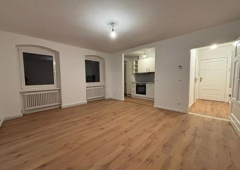 Die Wohnung überzeugt durch einen funktionalen Grundriss mit zwei gut geschnittenen Zimmern, die sich flexibel als Wohn-, Schlaf- oder Arbeitsbereich nutzen lassen. Eine Einbauküche ist bereits vorhanden und bietet eine praktische Grundlage für den Alltag. Das Badezimmer rundet das stimmige Raumkonzept ab.