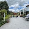 Der liebevoll gestaltete Garten bietet nicht nur Raum zur Entspannung, sondern beherbergt auch ein Gartenhaus für zusätzlichen Stauraum oder als Rückzugsort für Hobbys. Nach vorne ziert das Grundstück ein großzügiges Beet mit Blumen und Ziersträuchern, welches mit hochwertigen Monte Rosso Pflastersteinen umgeben ist. Die große Terrasse zum Garten ist mit großflächigen modernen Terrassenfliesen verlegt.