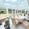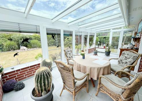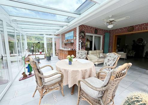 Der Wintergarten mit elektrischer Beschattung ist ein Highlight dieses Anwesens und lädt dazu ein, die Sonne in jeder Jahreszeit zu genießen. Die großzügige Terrasse mit elektrischer Markise erweitert Ihren Wohnraum nach draußen und schafft eine perfekte Umgebung für gesellige Zusammenkünfte oder entspannte Abende im Freien.