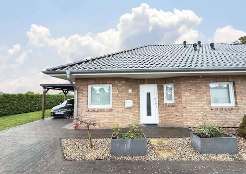 In einer absolut idyllischen Wohnlage von Walchum befindet sich diese exklusive, barrierefreie Walmdachbungalow-Doppelhaushälfte, die durch ihre durchdachte Architektur, helle Räume und ein harmonisches Wohnkonzept begeistert.