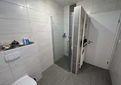 - Bodentiefe, ebenerdige Dusche mit Glasverkleidung