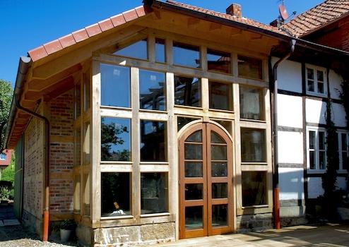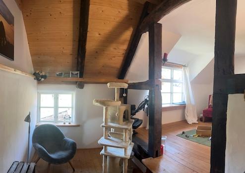 Fußböden aus Vollholz, größtenteils franz. Eiche. Wände sind mit Holzfaser gedämmt und mit Lehmputz. Verputzte Wände sind weiß und 2024 neu gestrichen. Andere Flächen sind vertäfelt. Das Dach ist 2015 mit 18 cm Holzfaser als Harzer Dach neu gemacht worden. Die 58 qm große Garage hat ein sehr großes, elektrisches Schiebetor und ist innen mit Holz ausgelegt. Auch dort ist ein Bullerjan eingebaut. Ein Holzbackofen ist optional. Ein irrer Partyraum!!!