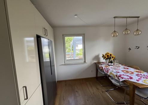 Die Küche ist mit einer hochwertigen Einbauküche von Küchen Kurz und mit Markengeräten eingerichtet. Ein attraktiver Side-by-Side-Kühlschrank bietet reichlich Platz für Vorräte. Das Treppenhaus wurde 2025 neu gestaltet. Die Fenster im gesamten Haus sind doppelverglast, die Außenfassade wurde gedämmt. Aktuell wird der Zugang zum Haus umgebaut. Hier entsteht ein zusätzlicher geräumiger Garderobenbereich mit neuer Eingangstür.