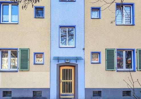 Zwei der Wohnräume orientieren sich zur Straßenseite, während der dritte Raum sowie die separate Küche den Blick in den begrünten Innenhof eröffnen, eine gelungene Kombination aus urbanem Umfeld und ruhiger Wohnatmosphäre.