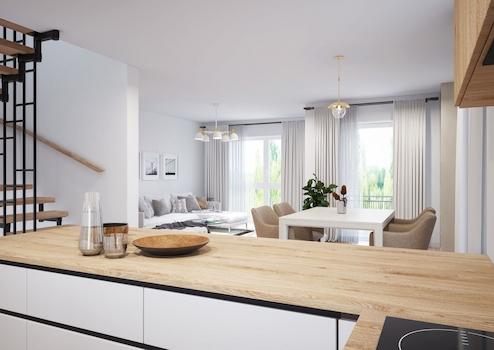 - großer Wohn-/Essbereich mit offener Küche und Balkonzugang, Eingangsbereich mit Diele & Garderobe sowie ein Gäste-WC