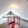 Über eine charmante Treppe in der Diele gelangen Sie in den oberen Bereich der Wohnung. Die gesamte 2. Ebene ist aufgeteilt in ein großes Zimmer, sowie ein kleineres Hobbyzimmer, weshalb Sie selbst entscheiden können, wie Sie den Raum nutzen möchten.