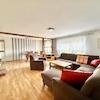 Die Gesamtwohnfläche von rund 199 m² verteilt sich auf zwei Wohneinheiten und insgesamt sechs Zimmer. Im Erdgeschoss befindet sich eine abgeschlossene Einliegerwohnung mit separatem Zugang, die aktuell vermietet ist und jährliche Mieteinnahmen in Höhe von ca. 3.240 EUR generiert. Diese Einheit eignet sich ideal als dauerhafte Vermietung, für Familienangehörige oder auch als Büro- bzw. Gästebereich. Die zweite Wohneinheit wird vom Eigentümer selbst genutzt und bietet großzügige, helle Wohnräume mit angenehmen Raumgrößen.
