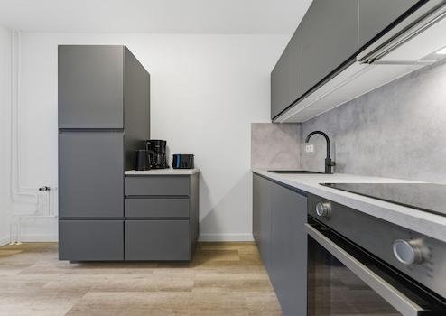 Die Ausstattung des Apartments ist hochwertig. Die Immobilie verfügt über eine hochwertige, vollausgestattete Einbauküche inklusive Herd, Kühlschrank und Waschmaschine.