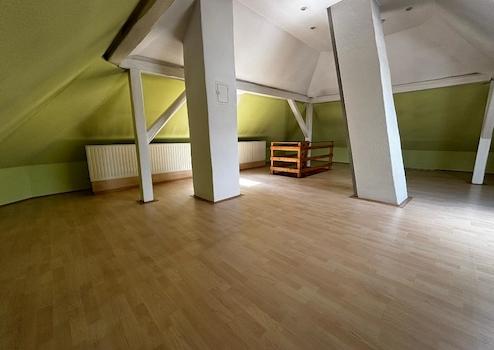 Die Wohnung verfügt über zwei helle und gut geschnittene Zimmer, die sich ideal als Wohn- und Schlafzimmer nutzen lassen. Die Küche bietet ausreichend Platz für eine gemütliche Essgelegenheit und führt direkt in das ausgebaute Dachgeschoss – ein Highlight, das zusätzlichen Wohnraum schafft und vielfältige Nutzungsmöglichkeiten bietet, beispielsweise als Arbeitsbereich, Gästezimmer oder Rückzugsort.