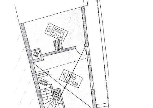 2.OG: 4,5-Zi-Wohnung über 3 Etagen mit Terrasse ( Diele, Wohnzimmer mit Erker, Wohnküche, Abstellraum, Bad, sep. WC)