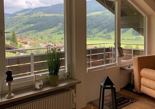 In ruhiger und sonniger Südhanglage von Oberstaufen-Wiedemannsdorf befindet sich diese gepflegte 2-Zimmer-Dachgeschosswohnung.