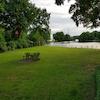 Grillecke direkt am Wasser mit acht festen Sitzplätzen.