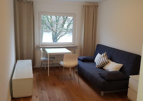 Voll möblierte Wohnung mit extra Küche, Waschmaschine und Trockner und Trockenboden zur Mitbenutzung