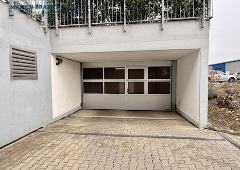 Zu der Wohnung gehört ein Tiefgaragenstellplatz (Nr. 6) im Untergeschoss mit eigener Box und Rolltor. Ein Stromanschluss ist ebenfalls vorhanden.