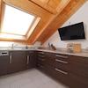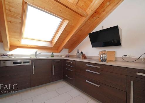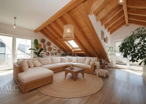 Über das Treppenhaus erreichen Sie das Dachgeschoss, in dem sich die Wohnung befindet. Bereits beim Eintreten wird man von einem großzügigen, lichtdurchfluteten Wohnbereich empfangen. Auf rund 40 m² bietet dieser Raum ausreichend Platz für eine gemütliche Wohnlandschaft, einen großen Esstisch sowie eine offene, moderne Einbauküche, die im Kaufpreis inbegriffen ist. Die großzügige Gestaltung verleiht dem Raum eine angenehme Offenheit und lädt zum Verweilen ein.