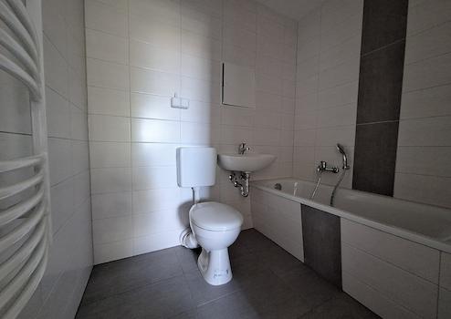 - gefliestes Bad mit Wanne und moderner Ausstattung, Waschmaschinenanschluss, Handtuchheizkörper