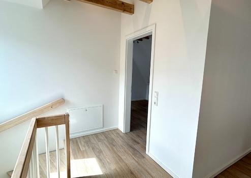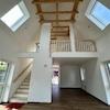 Die ausgebaute Empore bietet eine Galerie, die als gemütlicher Lese- oder Arbeitsbereich genutzt werden kann. Hier befindet sich außerdem ein drittes Schlafzimmer sowie ein weiteres Badezimmer.
