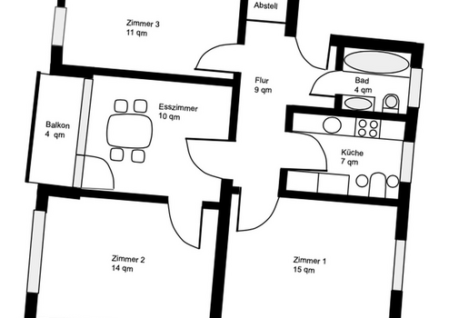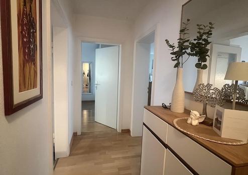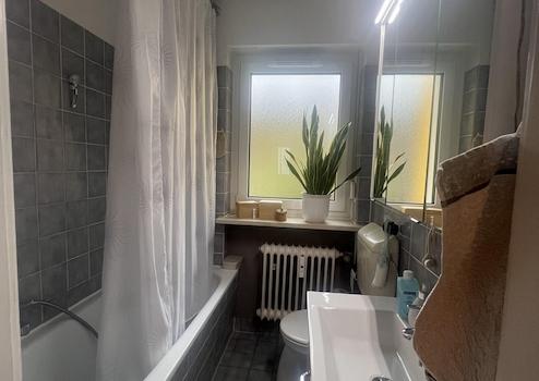 Drei separat abschließbare Schlafzimmer, ein Esszimmer mit Balkon, gegenüber eine vollausgestattete Küche mit Spül- & Waschmaschine sowie ein kompaktes Badezimmer mit Badewanne. Der großzügige Flur bietet zusätzlich eine praktische Abstellkammer. Im Keller steht ein trockener, abschließbarer Raum mit stabiler Stahltür zur Verfügung. Insgesamt eignet sich die Wohnung hervorragend für eine Wohngemeinschaft.