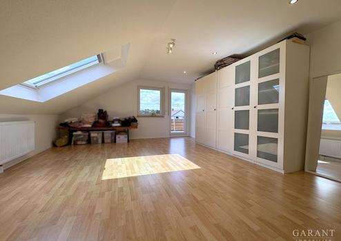 Im Obergeschoss erwarten Sie drei helle, geräumige Zimmer sowie ein weiteres schickes Tageslichtbad. Zwei Zimmer verfügen über einen Zugang zum überdachten Südwest-Balkon mit traumhafter Fernsicht und herrlicher Abendsonne. Ein Ort zum Träumen und Entspannen!