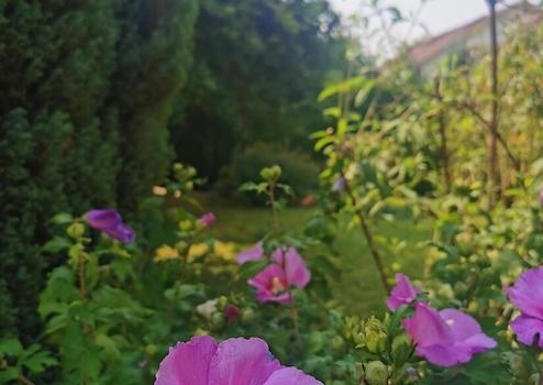 Der Garten ist ein Highlight: Alte, große Bäume spenden Schatten, schaffen Atmosphäre und bieten Privatsphäre. Bei sonnigem Wetter laden größere Grünflächen und Terrassen zum Entspannen, Gärtnern oder Spielen ein.