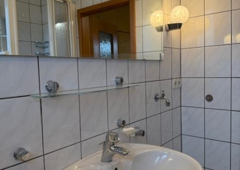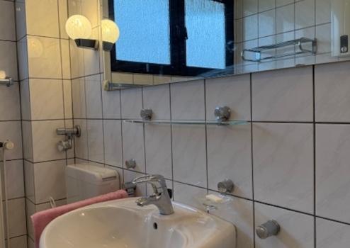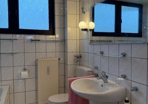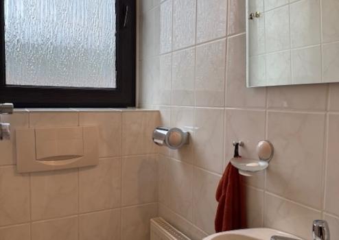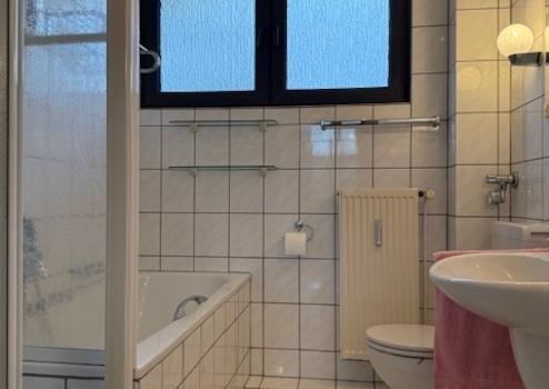 Weiterhin befindet sich das hell geflieste Badezimmer gegenüber dem letzten Schlafzimmer.