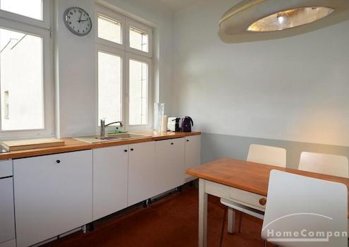 Vollständig eingerichtete Wohnung in Berlin Friedrichshain. Sie ist gemütlich, hell und ruhig. Vorhanden ist ein Doppelbett im Schlafzimmer, eine komplett eingerichtete Küche mit Einbauküche, Spülmaschine, Toaster und Mikrowelle, eine Waschmaschine und Internet. Tolle Lage im begehrten Teil von Friedrichshain. In der näheren Umgebung befinden sich unzählige Bars, Einkaufsmöglichkeiten und Restaurants.