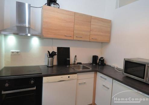 Hochwertig renoviertes Zwei Zimmer Apartment im ruhigen Hinterhaus - äußerst verkehrsgünstig - hervorragende Infrastruktur mit guten Einkaufsmöglichkeiten. Komfortable Ausstattung, teils mit Designermöbeln und Antiquitäten. Voll ausgestattete offene Einbauküche mit Mikrowelle und Ceran-Kochfeld und Geschirrspüler. Gemütliches Wohnzimmer mit Couchecke und Schreibtisch.