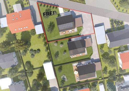 Dies ist ein real vorhandener Bauplatz, auf dem wir Beispielhäuser geplant haben. Das Grundstück hat insgesamt 1913qm und ist vorgesehen in verschieden große Grundstücke (535qm - 590qm) zu teilen. Den Teilungsvorschlag entnehmen Sie aus den Bildern. Die Abriss-/ Erschließungs-/ und Zufahrtskosten wurden miteinkalkuliert.