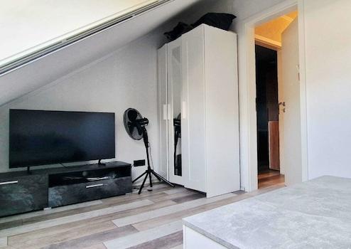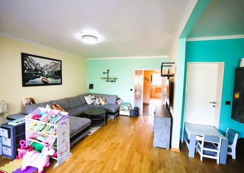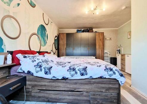 Die jetzigen Eigentümer öffneten die Wand zu einem Schlafzimmer, um mehr Platz im Wohnbereich zu gewinnen. Natürlich ist dies jederzeit rückbaubar, sofern gewünscht.