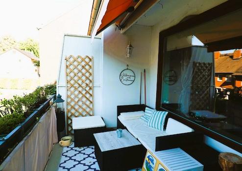 Über das Wohnzimmer erreichen Sie einen gemütlichen Süd-/Westbalkon , auf dem Sie in den Sommermonaten die Wärme und einen tollen Ausblick in den Garten genießen können.