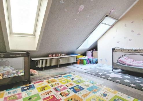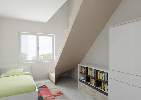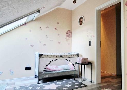 Über eine leicht gewendelte Treppe erreichen Sie den interessanten Bereich des Obergeschosses, der vor kurzer Zeit von einer "Bodenfläche" in Wohnfläche umgebaut wurde. Hier sind das Elternschlafzimmer ebenso untergebracht wie ein Kinder- und ein separates Gäste-Zimmer, das ebenso als Arbeitszimmer genutzt werden könnte.