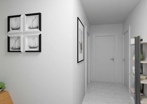 Sie betreten die Wohnung in eine große Diele, von der klassischerweise alle Räume abzweigen.