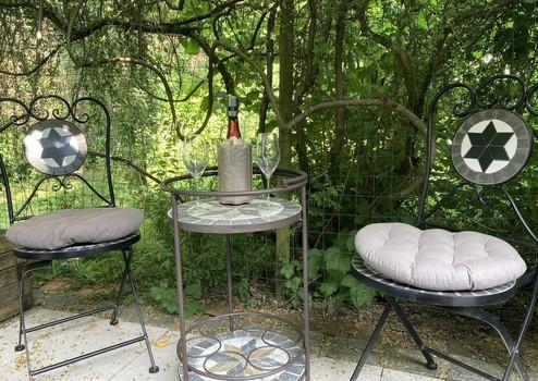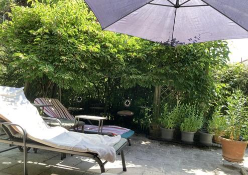 Der liebevoll angelegte eingewachsene Garten ist ein Highlight der Immobilie: Neben der großzügigen Terrasse gibt es im schönen Garten verschiedene Obstbäume und Beerensträucher.