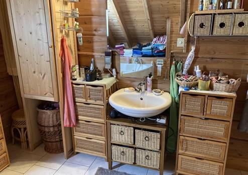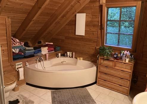 Das 1999 erbaute Einfamilienhaus in massiver Holzblock-Bauweise (Balkenstärke 16x22) überzeugt durch seine großzügige Raumaufteilung und hochwertige Ausstattung. Mit einer Wohnfläche von 135 m² bietet das Haus fünf gut geschnittene Zimmer, die viel Platz für die ganze Familie bieten.