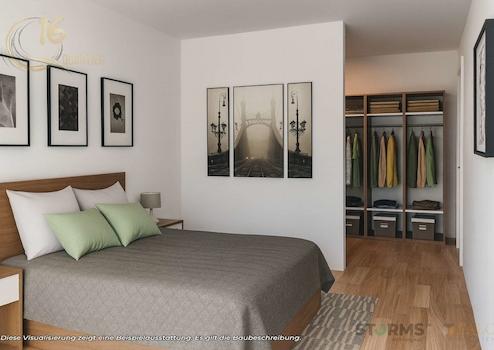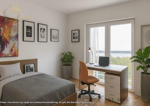 Ein besonderer Vorteil des Projekts ist die flexible Grundrissgestaltung, die – abhängig vom Baufortschritt – individuelle Anpassungen nach Absprache ermöglicht. Vom Wohnbereich aus ist der Zugang zu den Dachterrassen vorgesehen. Die Wohnung verfügt über zwei Dachterrassen mit einer geplanten Fläche von ca. 25,34 m² sowie ca. 22,81 m², wodurch ein außergewöhnlich großzügiger Außenbereich entsteht.
