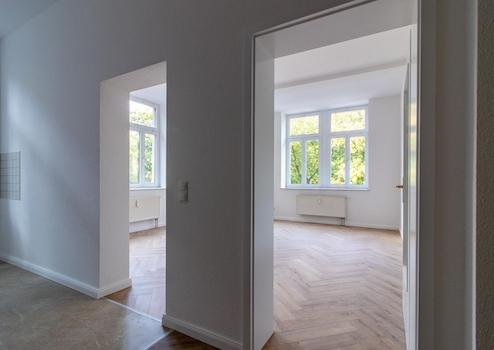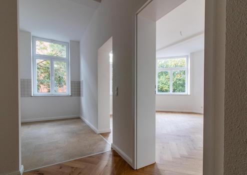 Schöne 2-Zimmer-Wohnung in der Nordvorstadt. Die Wohnung befindet sich im 1. OG in einem gepflegten Mehrfamilienhaus in der Osterweihstraße 18. 2024 wurde die Wohnung komplett renoviert, u.a. mit schönem Fischgrätboden.