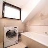 Das großzügige Badezimmer verfügt über ein Waschbecken, sowie eine Badewanne und bietet ausreichend Platz für eine Waschmaschine.
