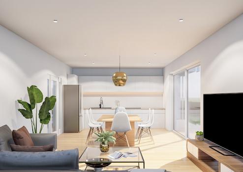 *Abbildung mit Außenanlagen, Garage, Zaun, Mobiliar und Leuchtmittel dienen der Illustration und sind nicht im Kaufpreis enthalten (siehe Baubeschreibung)