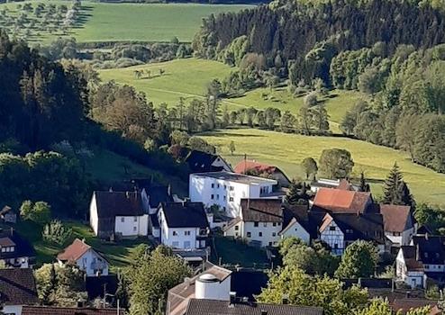 Die Bushaltestelle ist nur wenige Meter entfernt. Stündliche Busverbindung nach Haiterbach und Nagold.