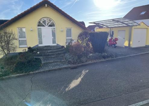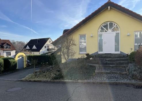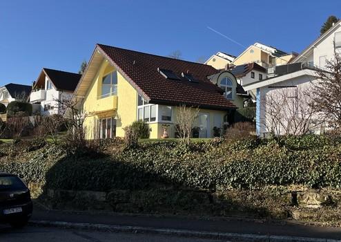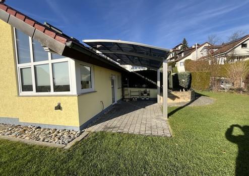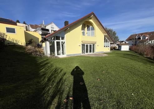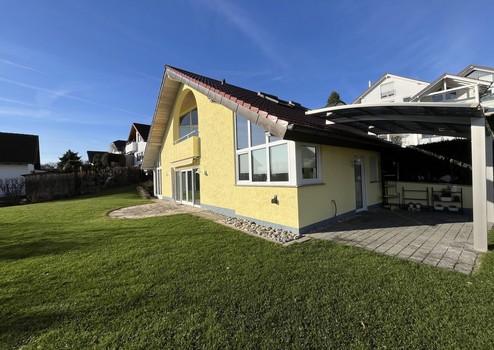 Ein architektonisches und attraktives und grosszügiges EFH mit weiträumigem permanent gepflegtem Gartengrundstück. Zur Vegetationszeit sind viele Sträucher blütengeschmückt.