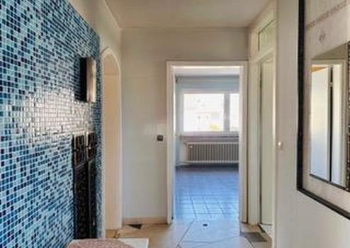 Im 1. OG gelangen Sie durch den Flur nach rechts in die Wohnküche mit Einbauküche. Auf der linken Seite ist das Kinderzimmer, dem schließt sich das Wohnzimmer mit zum Wintergarten ausgebautem Balkon an, ein weiteres Schlafzimmer befindet sich an der Stirnseite des Flurs. Das große Badezimmer mit Eckbadewanne und separater Dusche lässt keine Wünsche offen.