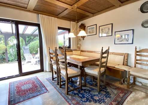 Eine weitere besondere Qualität dieses Hauses liegt in seiner Vielseitigkeit. Die Einliegerwohnung, mit separatem Eingang und eigener kleiner Terrasse, eröffnet Freiraum – für Gäste, erwachsene Kinder, berufliche Nutzung oder einfach als Ort, der unabhängig vom Hauptgeschehen funktioniert.
