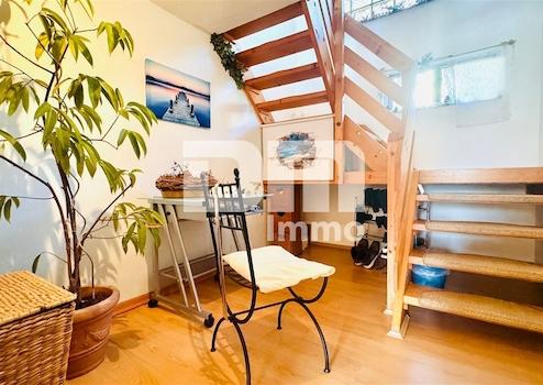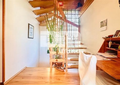 Über eine massive Leichtbautreppe aus Holz gelangen Sie in den Wohnraum EG sowie OG / DG des Anbaus.