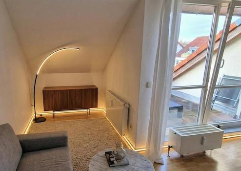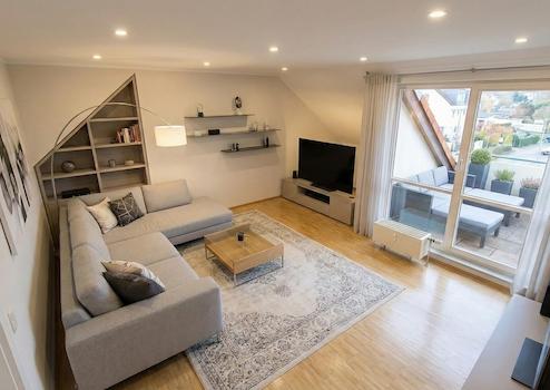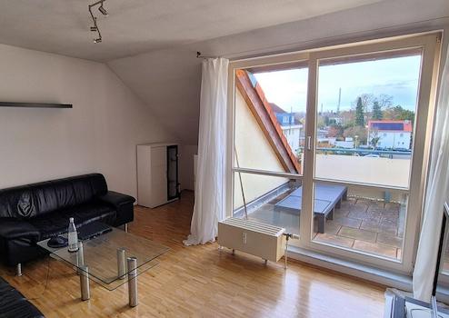 Gemütliche, ruhige und großzügige 2-Zimmer-Dachgeschosswohnung mit windgeschützter Dach-Terrasse bzw. Loggia als Highlight.