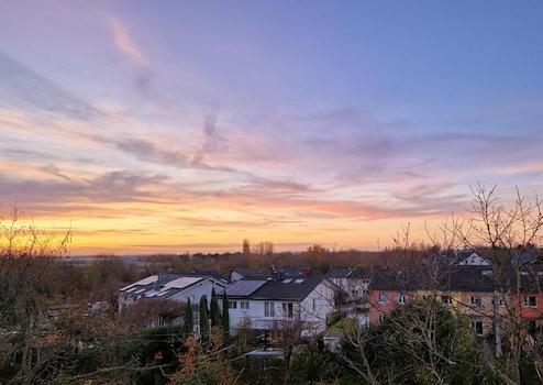Die Ost-West Ausrichtung verspricht sowohl morgens Sonne beim Frühstück in der Küche als auch Mittags die Möglichkeit sich bei einem Sonnenbad auf der Dachterrasse zu entspannen.