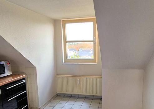 Besonders gefällt uns die Aussicht (Himmel und grüne Natur), die Gemütlichkeit durch die Dachschrägen und das Gefühl, keinen „über sich“ zu haben. Eine Dachwohnung ist größer und heller, als es die reine Quadratmeterzahl vermuten lässt. Über allen inneren Türen sind Lichtfernster, die wortwörtlich die Wohnung „lichtdurchfluten“.